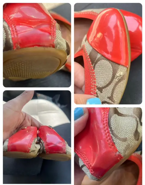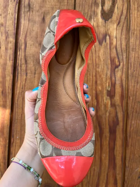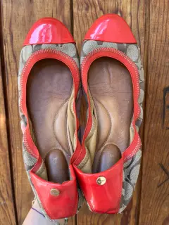 Balerinas coach. Balerinas Flats flexibles coach color Beige , café y naranjas . Número 25.5 tienen detalles de uso a un costado de una de las balerinas , en la suela y en la parte de atrás desgastes ligeros aún son muy útiles (detalles últimas fotos )