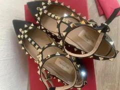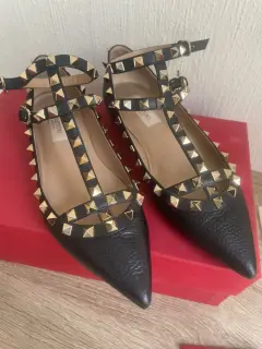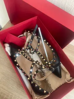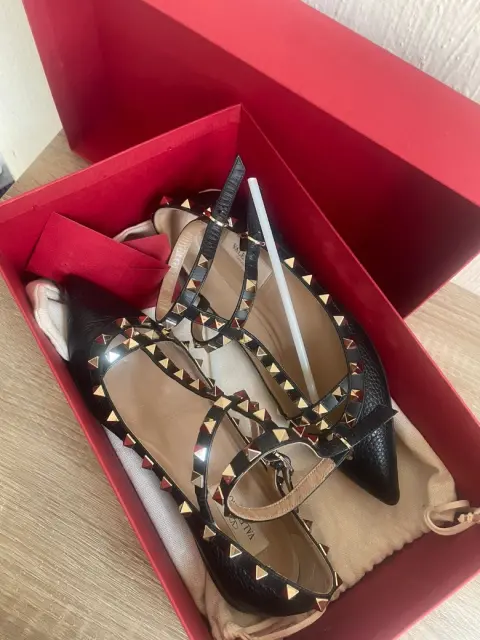 Elegantes balerinas VALENTINO GARAVANI originales.negras con estoperoles dorados cuentan con caja cubre polvo sertificado de autenticidad están al 100%