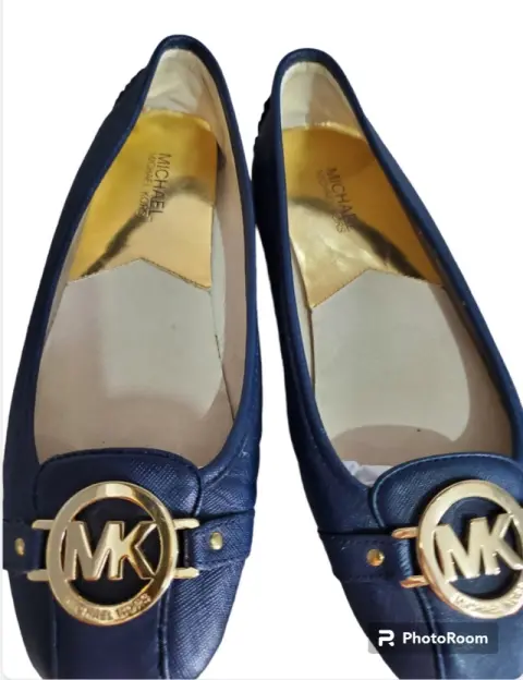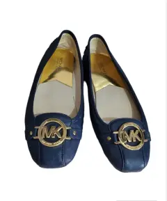 SUPER CÓMODOS Y ELEGANTES MOCASINES MICHAEL KORS- PIEL- PUNTA REDONDA- SUELA ACOLCHONADA- COLOR AZUL MARINO- HARDWARE DORADO- TALLA 6M MEX. 9M USA- PEQUEÑA DECOLORACIÓN EN LAS PUNTAS IMPERCEPTIBLES- SIN CAJA