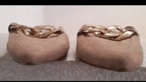 Comodos zapatos color beige con hebilla dorada, talla 2, a 2,1/2,son de gamuza, son usados, traen un pequeño detalle en la parte de enfrente, es una mancha, esta por la hebilla, no está rota,lo demás esta en perfectas condiciones.