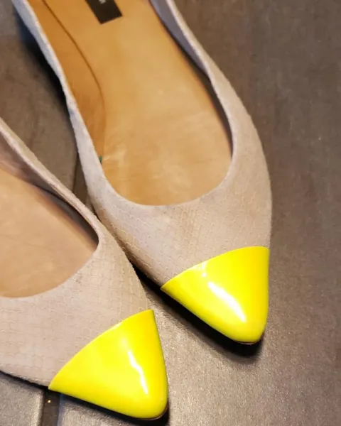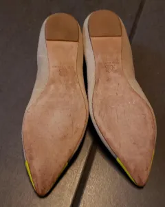 Flats color entre arena/beige, con punta anarillo fosfo, suela de cuero, #5, usados pero en buen estado.