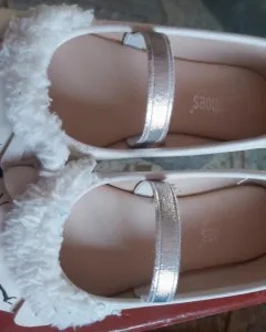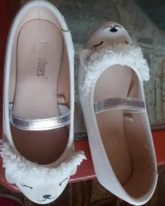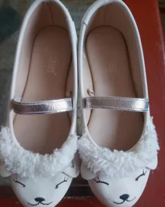 Flats beige carita. Flats color beige en perfecto estado son de talla 18 cm con tiritas color plata no resbalan muy comodos no estan rrotos