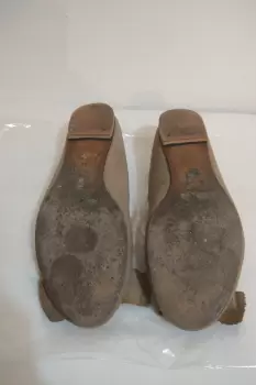 Combinan con todo, en piel tipo ante, en buen estado sólo un poco sucios, principalmente en la punta, les mandé poner tapa extra, con lo que el tacón queda en 1 cmTalla 36 que equivale a un 3 mexicano