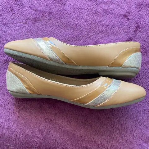 Flats beige y dorado NUEVOS. Flats balerinas talla 3.Nuevas.Color beige camel con detalles en charol y en dorado.Corte, forro y suela sintética.Marca Dorothy Gaynor, hechas en México.