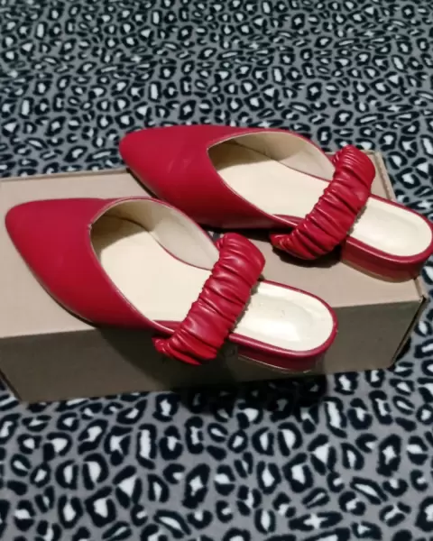 Flats color rojo con resorte en el tobillo, destalonadas.