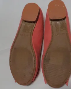 Flats coral Aldo. Flats Aldo del número 36 europeo que equivale a un 3 mexicano, abiertas al frente, con moño que trae aplicaciones plateadas.