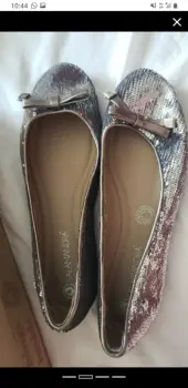 Flats lentejuelas gris. Lindos zapatitos de meter , usados una ocasión en buen estado, sin ningún detalle número 5½, con caja