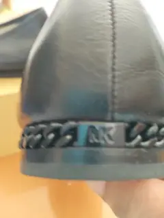 Bonitos FLATS negros con punta de charol de piel y suela de cuero tacón con adornos de cadena