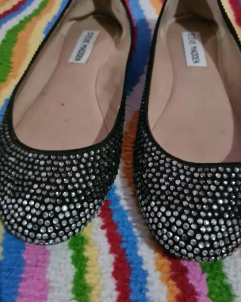 Flats negros steve madden. Flats color negro con punta en gris porque son como negros que se van degradando, son 22 y medio, son flats super planos.