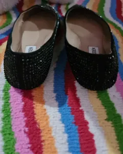 Flats color negro con punta en gris porque son como negros que se van degradando, son 22 y medio, son flats super planos.