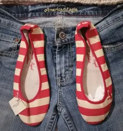Flats nuevos rojo con beige. Lindos flats color rojo con beige están divinos, y son cómodos serían número 23, armo paquetes a buen precio 😇😇🙏🙏🙏