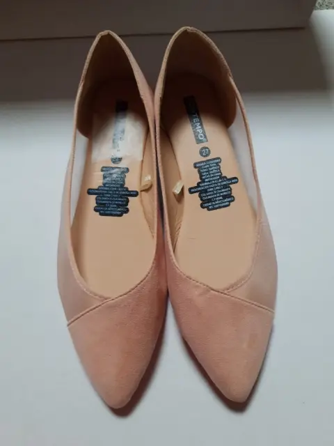 Flats Rosas. Estos flats rosa son de la marca CONTEMPO de Suburbia, son nuevos sin ninguna puesta; sin embargo, la platilla del zapato derecho traía la etiqueta y por desgracia al momento de quitarsela se quedo con rastros de ella, de ahí en fuera, esta en buenas condiciones. Son talla 27 MX/10 US, la suela es sintética y por fuera es tipo gamuza.