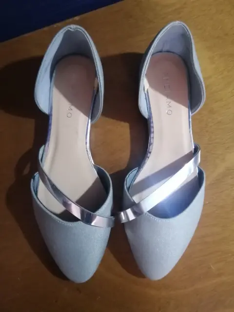 Hermosos zapatos. Zapato de piso, color azul con detalle plateado, #3.5, ideal para oficina!!