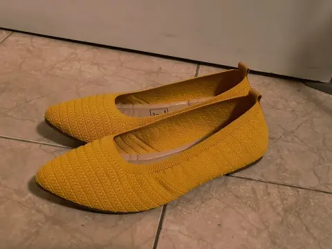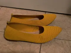 Zapato de dama talla 25 en tono mostaza corte textil (tejido) suela sintética, cómodos y suaves.