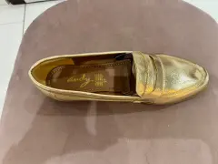Zapatos. Zapatos dorado de piso Zapatos ideales para fiestas, reuniones, vestimenta elegante