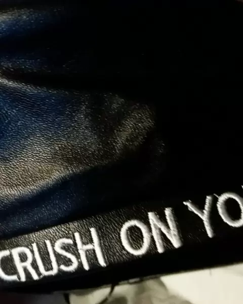 Boina de vinipiel negra. Hermosa boina de vinipiel y bordado crush on you, que protege del frío y la lluvia, además que te hace lucir preciosa y llamativa!