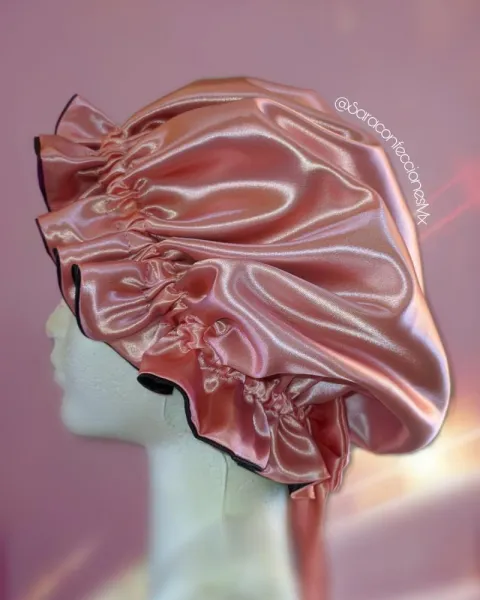 Bonet satinado reversible. Al estar hecha 100% de seda, no se crea fricción en el pelo y evita el desgaste, reduciendo de esta manera el frizz y dejando nuestro cabello suave y brillante.🙆🏻♀️💕Tenemos color palo de rosa con negro