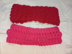 Dúo de diademas tejidas para dama. Dos diademas tejidas a gancho color rosa mexicano y rojo escarlata