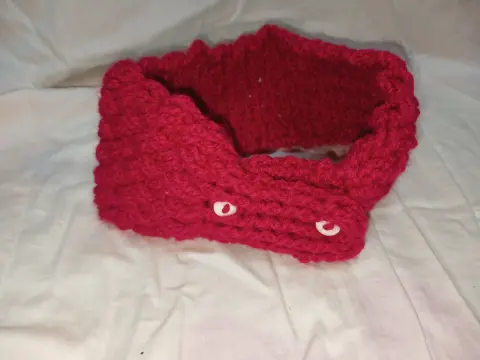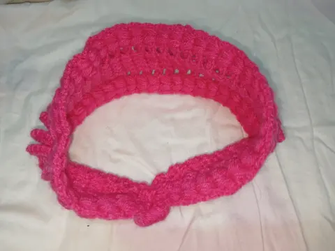 Dos diademas tejidas a gancho color rosa mexicano y rojo escarlata