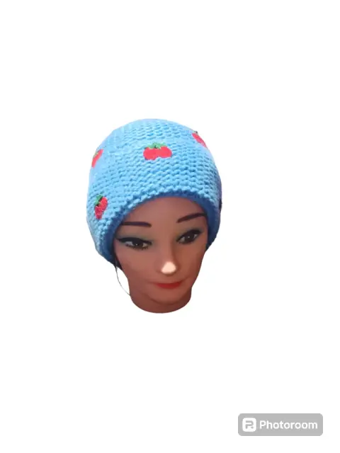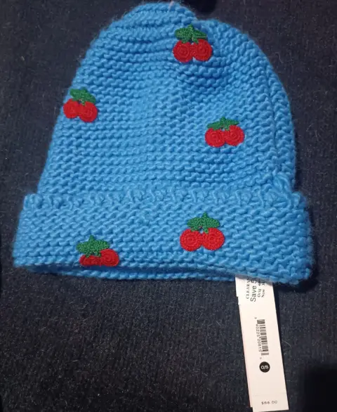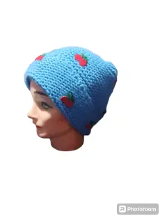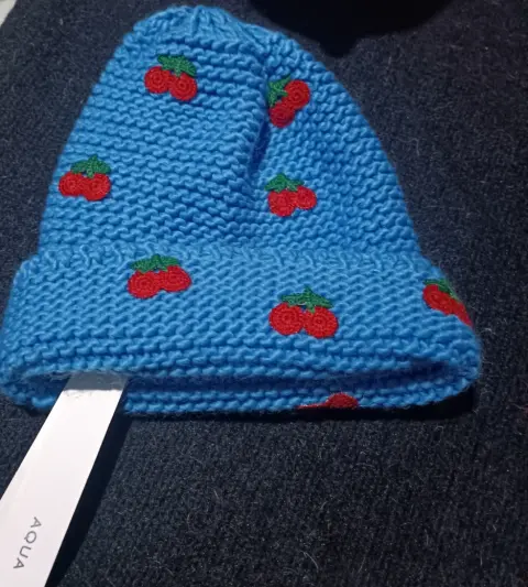 GORRO AZUL CIELO CON CEREZAS. GORRO SUAVE, MARCA AQUA, ACRILIC,UNITALLA,MIDE 23 CM ANCHO, 22 CM, SOLO VENTA EN TIENDA EXCLUSIVA