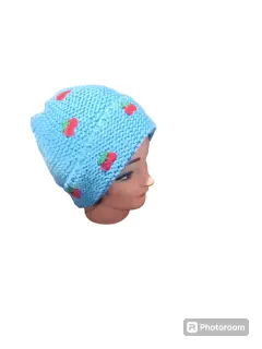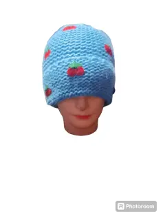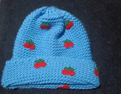 GORRO AZUL CIELO CON CEREZAS