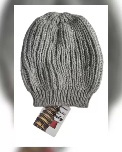 Gorro Tejido Pto Estructura c/Lentejuela. Gorro en tejido de punto con estructura color GRIS ACERO y lentejuela cosida tono PLATA. 45% acrílico, 40% poliéster, 6% viscosa, 3% alpaca. Para lavado en casa.