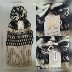 Jgo Gorro, cuello y Guantes Tejido Punto. Juego de gorro, cuello y guantes en tejido de punto bitono CAPUCHINO/NEGRO ÉBANO. Gorro c/pompón, cuello infinito y guantes sin dedos c/capucha convertible. UNITALLA. Dimensiones cms: Cuello 39 ancho, 174 largo. 100% acrílico. P/lavado en casa.***NO SE VENDEN POR SEPARADO LAS PIEZAS***