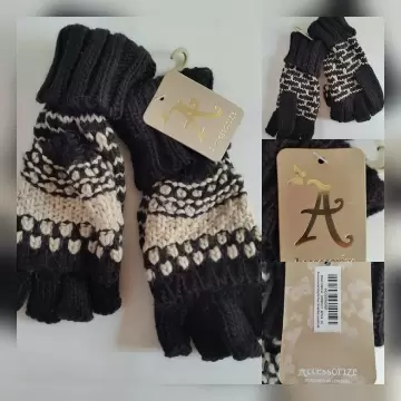 Juego de gorro, cuello y guantes en tejido de punto bitono CAPUCHINO/NEGRO ÉBANO. Gorro c/pompón, cuello infinito y guantes sin dedos c/capucha convertible. UNITALLA. Dimensiones cms: Cuello 39 ancho, 174 largo. 100% acrílico. P/lavado en casa.***NO SE VENDEN POR SEPARADO LAS PIEZAS***