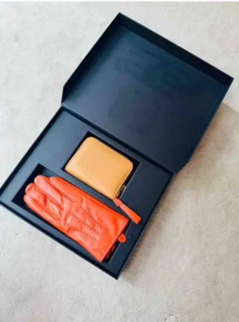 Estuche de regalo guantes y monedero a juego.