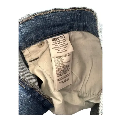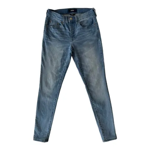 High rise jegging Aéropostale. Jegging azul claro, a la cintura, tiro alto, mezclilla delgada y suave, stretch.Talla: 4Medidas: 32 cm cintura, 24 cm tiro, 37 cm cadera (costura a costura), 73 cm entrepierna.Sin detalles.