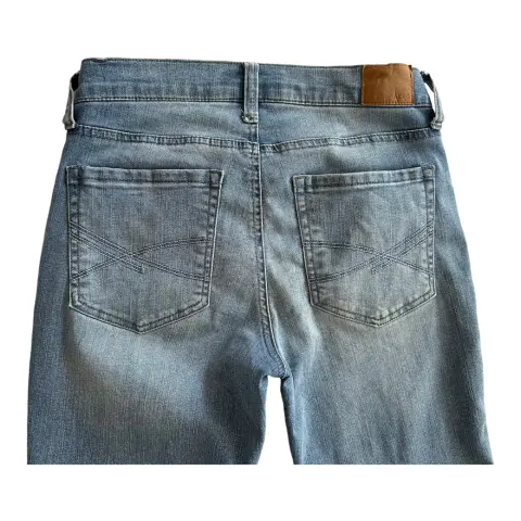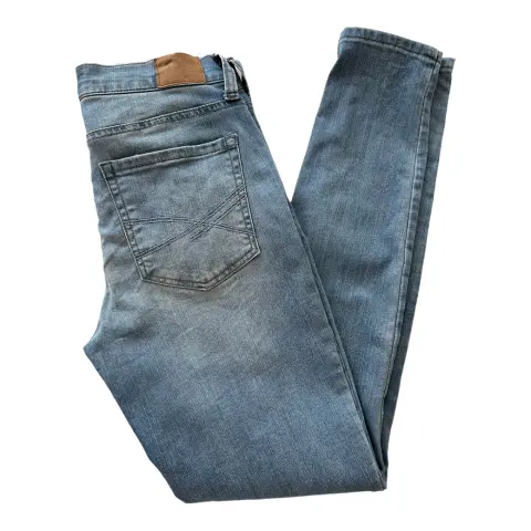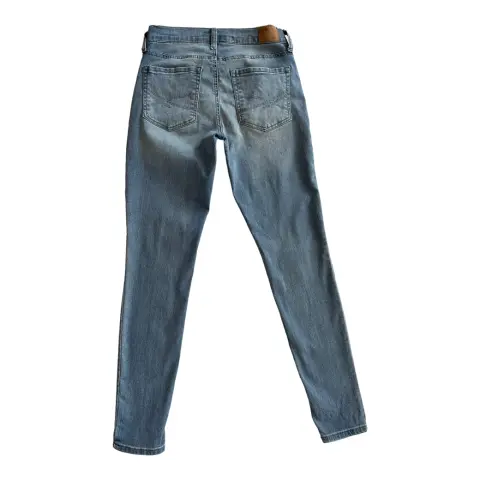 Jegging azul claro, a la cintura, tiro alto, mezclilla delgada y suave, stretch.Talla: 4Medidas: 32 cm cintura, 24 cm tiro, 37 cm cadera (costura a costura), 73 cm entrepierna.Sin detalles.