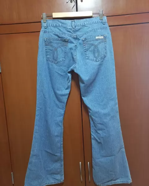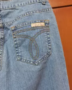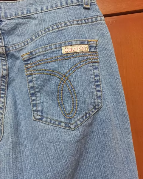 Jrans acampanados, marca Calvin Klein, corte clásico, mezclilla clara, talla 9, en perfecto estado.De contorno total de cintura mide 79 cm, tiro por la parte de adelante 22 cm, tiro por la parte de atrás 32 cm, largo 104 cm.