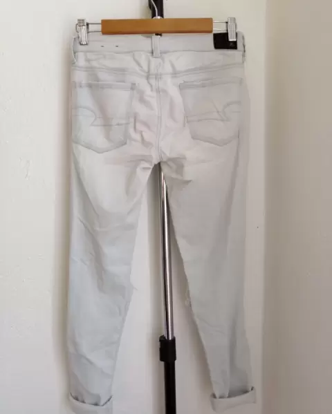 Jeans American Eagle super stretch. Estos jeggings AEO son súper cómodos por que son super super stretch, la talla es 2. Son tiro normal, el modelo es “jegging ankle”. No tiene ningún detalle El modelo es así de roto, estos jeans duran muchísimo! Lo doblado de la parte de abajo solo lo hice para fines de la foto :)