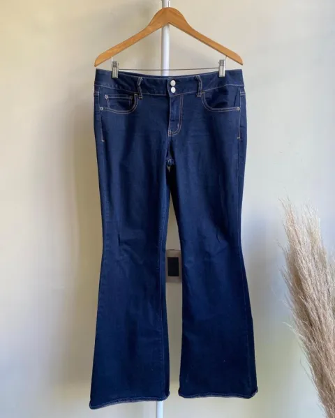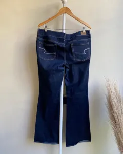 Jeans American Eagle súper stretch. Jeans American Eagle.Talla 14, color azul marino.Corte regular straight, tecnología súper stretch.Muestra principios de desgaste en la entrepierna (foto5), además de eso en excelente condición.Medidas en cm: cintura 44, cadera 53, tiro 31, largo 104, tobillo 16.La tela es stretch.