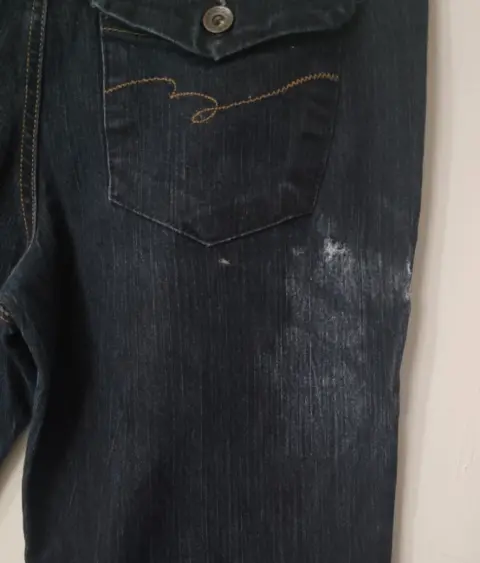 Jeans andolinoldu. Pantalón campanaTalla 10Marca andolinoldu, marca AmericanaTiene el dellate, aunque así es el pantalón, por atrás, se ve en la última foto