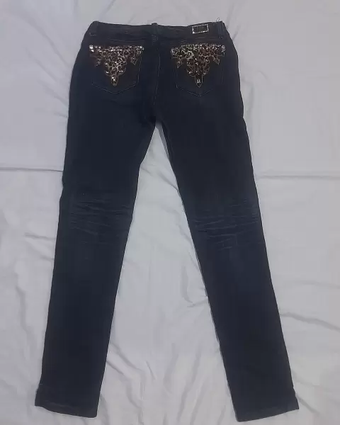 Jeans animal printer, con aplicaciones tipo diamante, sin detalle.