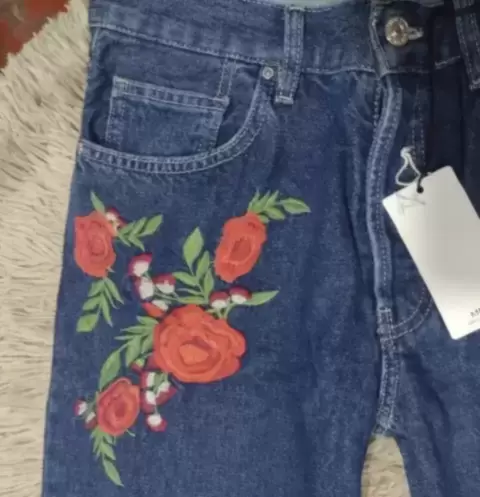 Jeans rectos Mango, talla 36 EUR (26), con bordados de flores en piernas, de tiro medio. Cierra con botones. Nuevos con etiqueta.📌 Medidas aprox: cintura 38 cm, cadera 50 cm, tiro 24 cm, largo 95 cm.