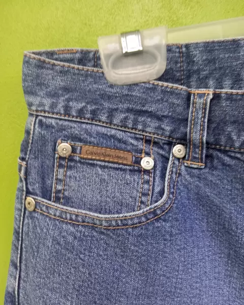 Hermoso Calvin Klein de mezclilla gruesa un poco strech. Talla 10 L Da perfecto su talla. Corte Cintura y recto. Dos puestas, perfecto estado Medidas sin estirar: cintura: 80 cm.... Cadera: 116 cm... Tiro: 35 cm...