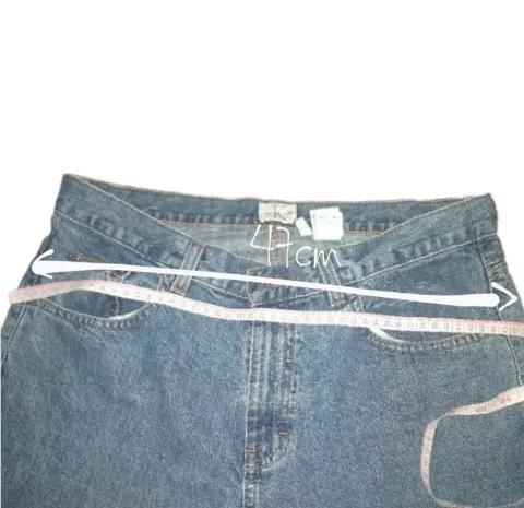 Jeans en perfecto estado, tiro alto talla 9 mexCorte muy bonito y mezclilla en excelente estado. Lo compre pero me quedo flojo de la cintura , soy talla 7Cintura 40 cmLargo 101cmTiro 36cm, bolsillo a bolsillo 47cm (últimas dos fotos )