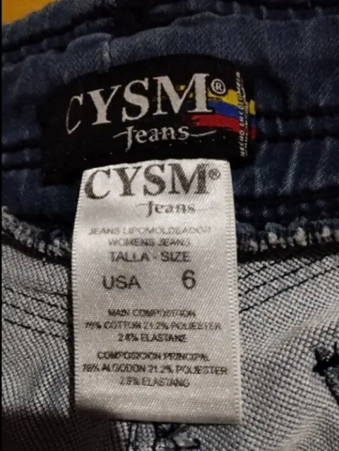 Jeans colombiano Lipomoldeador marca CYSM talla 6. Con costuras traseras para aumentar visualmente el tamaño de los glúteos, cuánta con cordón para ajustar la pretina del pantalón. Sin detalles en excelente estado