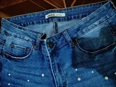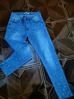 Muy originales jeans con aplicación de perlas, talla 9, excelente estado,