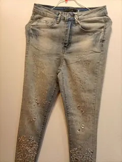 Hermosos jeans con pedrería bordada ,super en tendencia , entallados y entubados,resaltan cualquier look.talla S 28.
