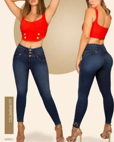 Jeans corte colombiano. Jeans corte colombiano que brinda entre sus beneficios comprimir el abdomen, marcar la cintura, levantar los glúteos, dando forma espectacular 👌 Color azul oscuro Tallas de la 5 a la 13