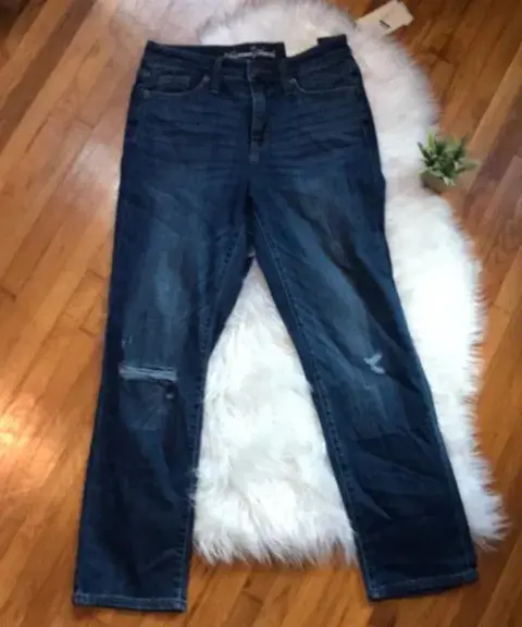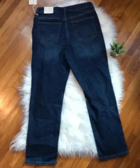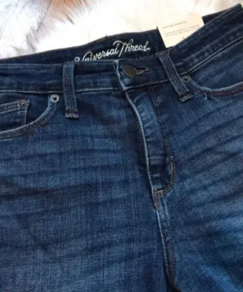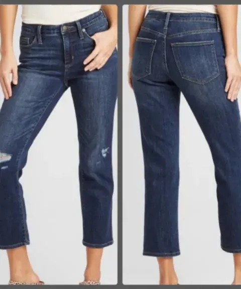 Jeans de mezclilla con rasgaduras pequeñas en rodillas, corte recto. Quedan tipo cropped o cortos como se aprecia en la imagen, vienen siendo talla 14 de la marca Universal Thread lo que equivale a una L pero paso medidas de ser necesario.