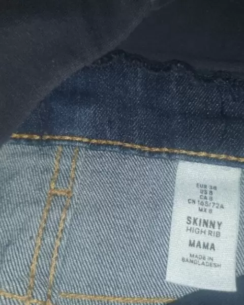 Jeans skinny color azul con bolsas, para maternidad súper cómodos stretch en la pancita que puede aguantar todo el embarazo, marca h&m, talla 8, foto sin detalles.