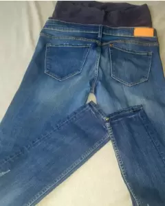Jeans de maternidad. Jeans skinny color azul con bolsas, para maternidad súper cómodos stretch en la pancita que puede aguantar todo el embarazo, marca h&m, talla 8, foto sin detalles.