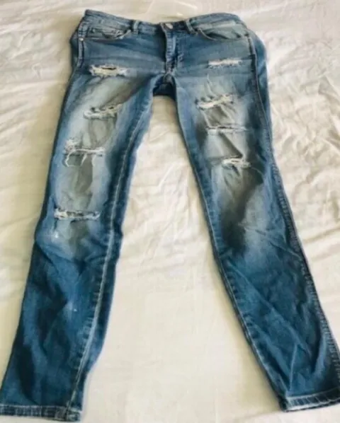 Pantalón de mezclilla, marca pull & bear, talla 24, color azul,tiene algunos detalles de uso y unas pequeñas manchas blancas que se muestran en las fotos