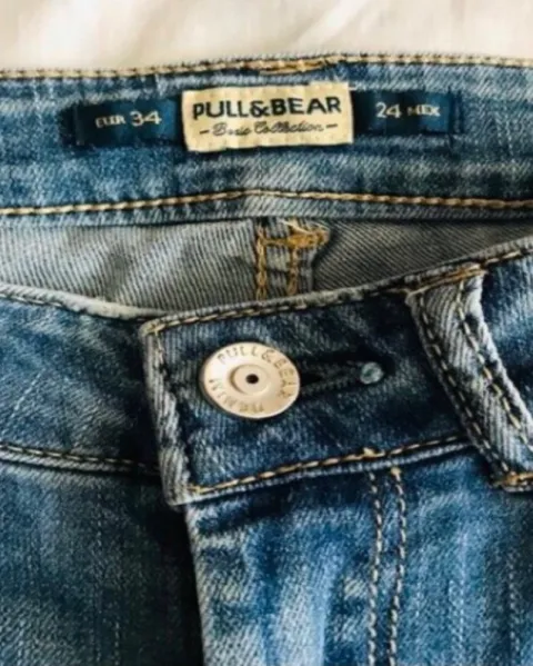Jeans de mezclilla. Pantalón de mezclilla, marca pull & bear, talla 24, color azul,tiene algunos detalles de uso y unas pequeñas manchas blancas que se muestran en las fotos