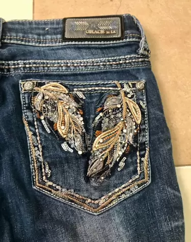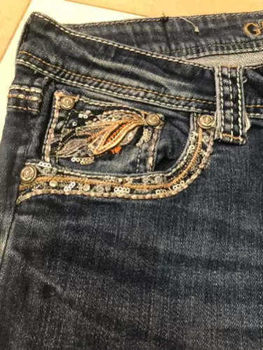Jeans Decorado. Checa el decorado de estos jeans, están bien padres, son nuevos, talla 29/M medidas cintura 40, cadera 44, largo 100, no los dejes ir,