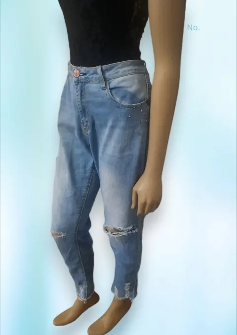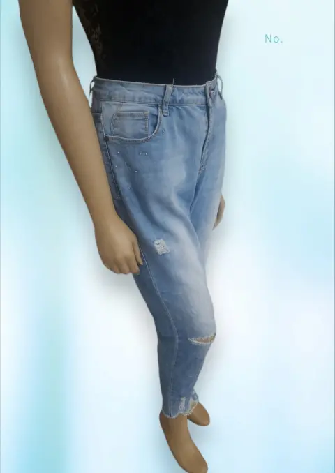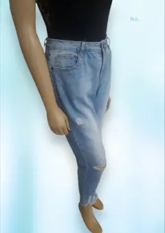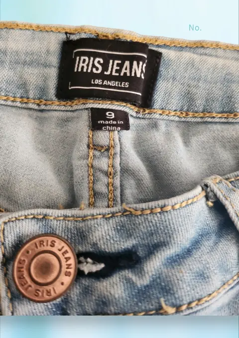 Jeans Distress Entubados Iris, talla 9, color Azul Claro, estilo distresado, both y cierre de cremallera, 5-bolsillos clasicos, pretillas para cinturon, detalle de Piedras brilliantes al frente, Heche de algodon, poliester y raron, mide 37cm de cintura, 53cm de cadera, 63cm de entrepierna, con 92cm de largo de la cintura hacia abajo sin bastilla, en buen estado cosmetico.